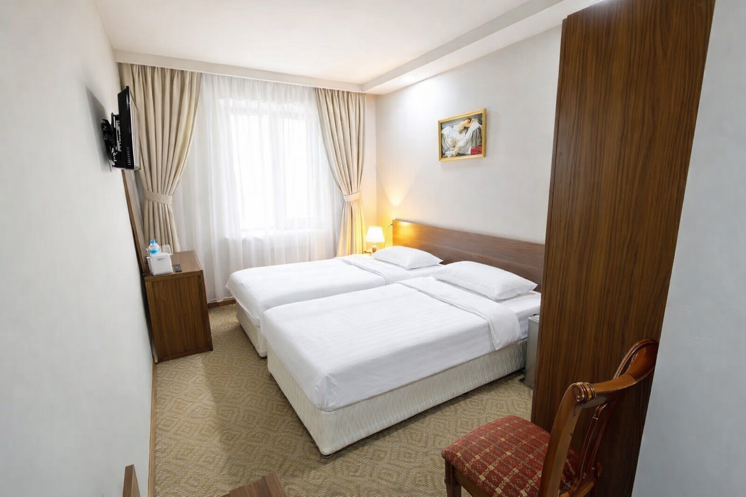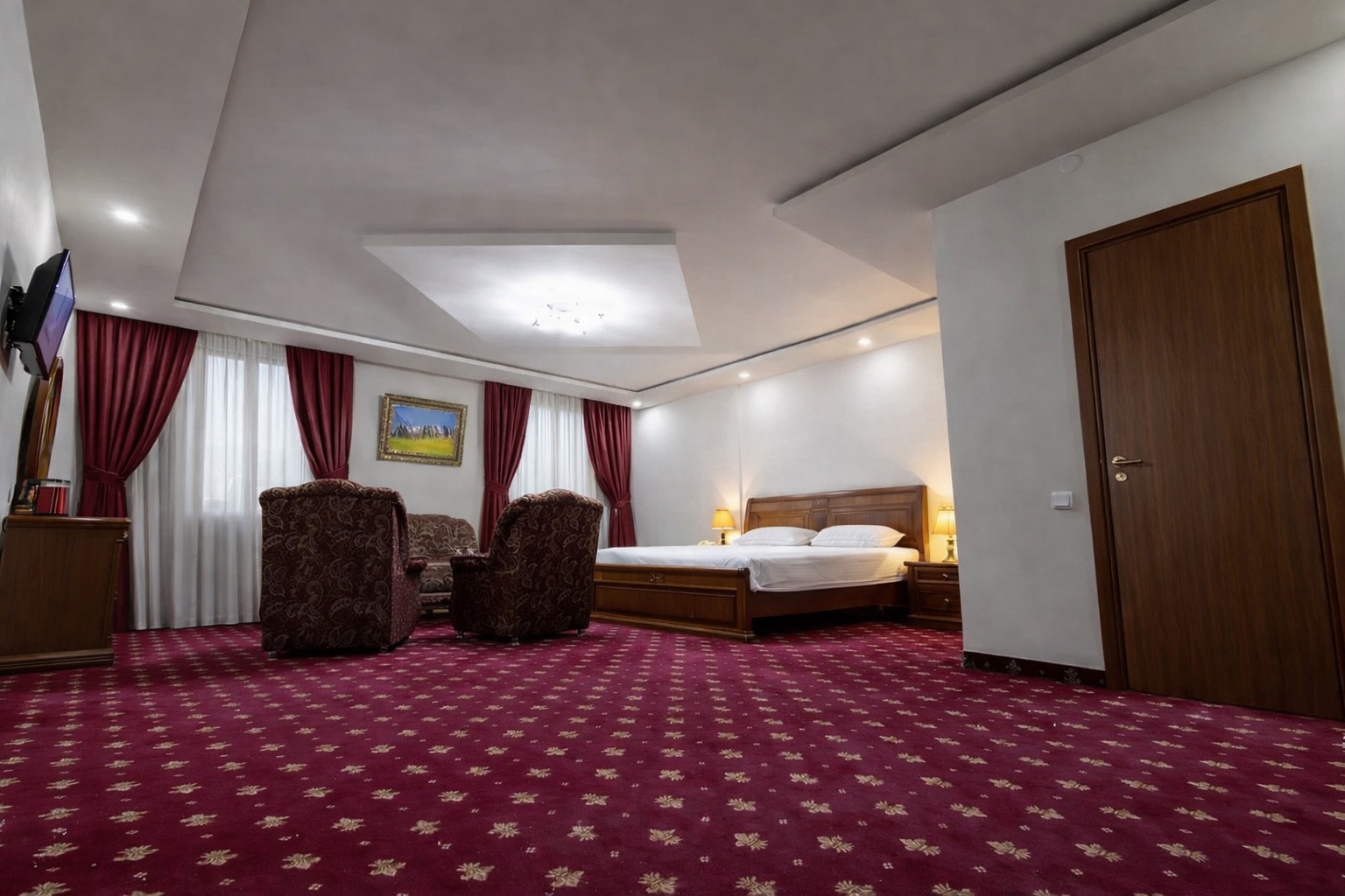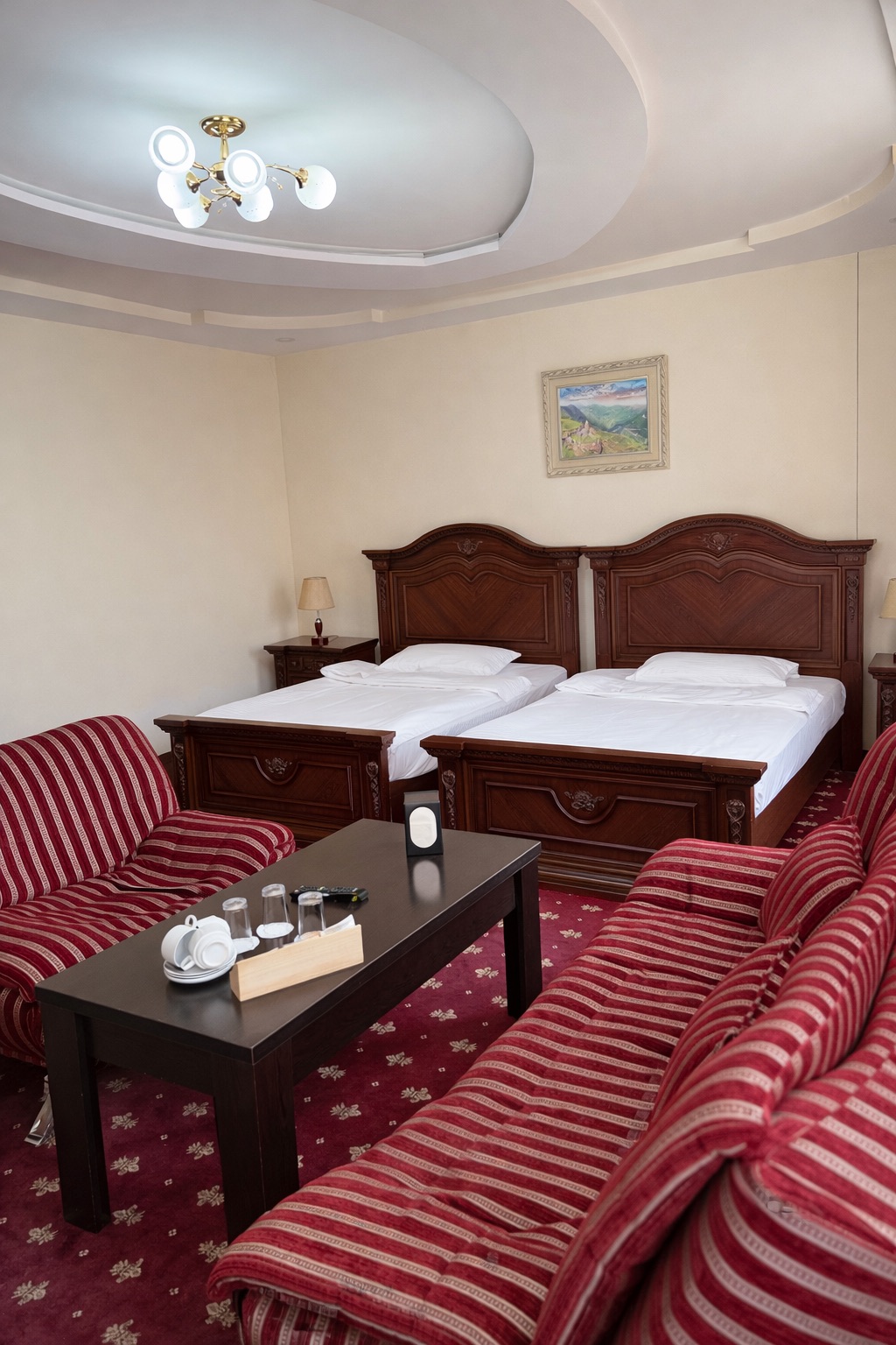 Գյումրի հյուրանոցը հյուրերի ընտրությանն է առաջարկում թե΄ բիզնես այցի, և թե΄ ընտանեկան հանգստի համար նախատեսված հարմարավետ մոտ 80 սենյակ: Ընդարձակ և յուրահատուկ ոճով համարներն, ինչպես նաև հյուրանոցի հյուրընկալ անձնակազմը, կստեղծեն բոլոր անհրաժեշտ պայմանները լիարժեք հանգստի կամ արդյունավետ աշխատանքի համար: Հյուրանոցի սենյակների պատուհաններից բացվում է տեսարան դեպի գեղատեսիլ Արագած լեռը: Ընկերասեր և բազմաթիվ լեզուներին տիրապետող անձնակազմը տրամադրում է բարձրակարգ ծառայություններ: Հարմարավետ սենյակներն ապահովված են գեղեցիկ կահույքով, հեռուստացույցով, սառնարանով, տեղային եւ միջազգային հեռախոսակապով, վարսահարդարիչով, հյուրերի հանգստի համար անհրաժեշտ բոլոր պարագաներով:
