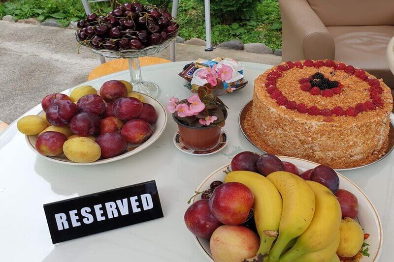 Առաջարկում ենք 10-60 հոգանոց տաղավարներ, որոնք ապահովված են խմելու ջրով, էլեկտրականությամբ և գազով: Առկա են մանղալներ և խորոված անելու համար անհրաժեշտ պարագաներ: Համապատասխան հավելավճարով տրամադրում ենք նաև վառելանյութ՝ փայտ, ածուխ: