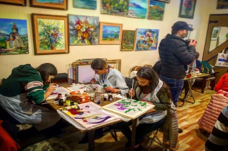 Սիրով առաջարկում ենք մեր արվեստանոցում մասնակցել բատիկի վարպետաց դասին: Նախապես փոքր փայտե շրջանակի վրա ձգված, հիմնականում շիֆոնե կտորին, արվում է նկար։ Նկարը հատուկ նյութով ընդգծվում է ժամանակը խնայելու համար, որովհետև այն որոշակի ժամանակ է պահանջում որպեսզի չորանա, իսկ վարպետաց դասի մասնակիցներին մնում է ընտրել համապատասխան գույնը և ներկելով կտորը՝ ստանալ ինքնատիպ արվեստի գեղեցիկ գործ։ Աշխատանքի ընթացքում խոսվում է բատիկի կատարման սկզբնական ընթացքի մասին ընդհում սկսած կտորը շրջանակի վրա ձգելուց մինչև ավարտուն աշխատանք ստանալը։