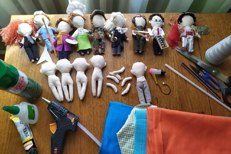 տիկնիկագործության համար անհրաժեշտ բոլոր նյութերը։ Վարպետաց դասից հետո Դուք տիկնիկը կարող եք վերցնել Ձեզ հետ։