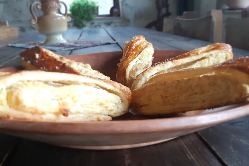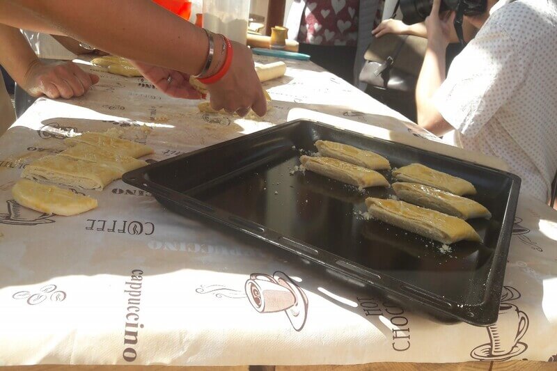 Կպատրաստենք գաթայի միջուկը՝խորիզը, կդնենք շերտավոր խմորի մեջ, ապա գրտնակելով կհասնենք կտրատման փուլին: Կտրատելուց և պատառաքաղով նախշեր անելուց հետո գաթաները կտեղադենք ջեռոցը: