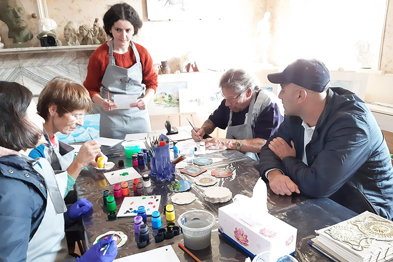 Գեղարվեստի պետական ակադեմիան ավարտելուց հետո նկարչուհի Գոհար Պետրոսյանը սկսեց փորձեր կատարել քանդակներով և կավով՝ միաձուլելով քանդակագործության և նկարչական իր հմտությունները: Այսօր Հացիկ գյուղի իր տանը կից արվեստանոցում Գոհարը ստեղծում է յուրահատուկ նկարներ և կավե արձանիկներ հայկական զարդանախշերով: Գոհար Պետրոսյանի` թանգարան հիշեցնող պատկերասրահում Դուք կարող եք մանրամասն ուսումնասիրել և բացահայտել գեղարվեստի տարբեր ոճերը: Գոհարի կյանքին և ստեղծագործություններին ծանոթանալուց հետո Դուք ինքներդ կարող եք պատրաստել ձեր սեփական աշխատանքները՝ օգտագործելով նախապես թրծված կերամիկական իրեր՝ ափսեները կամ արձանիկները: Գոհարի սեղծագործություններում մեծաթիվ են կավե արձանիկները, որոնք հայկական ավանդական տարազի միջոցով ներկայացնում են տարածաշրջանի աշխարհագրությունը, պատմությունը, առօրյան և ավանդույթները: Նա նաև ուսուցչուհի է և իր գիտելիքներն է փոխանցում գյուղի երեխաներին: Մինչ արձանիկներն ու ափսեները նկարելուց հետո չորանան (վառարանի մեջ, 30 րոպե), Դուք կարող եք վայելել սուրճի/թեյի հյուրասիրությունը և շրջել արվեստանոցում։