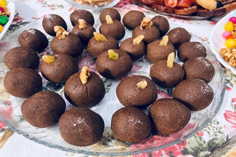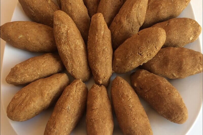 Դումբրուկը պատրաստվում է չոր փոխինձից՝ ձեռքի մեջ փոքրիկ գնդեր սարքելով: