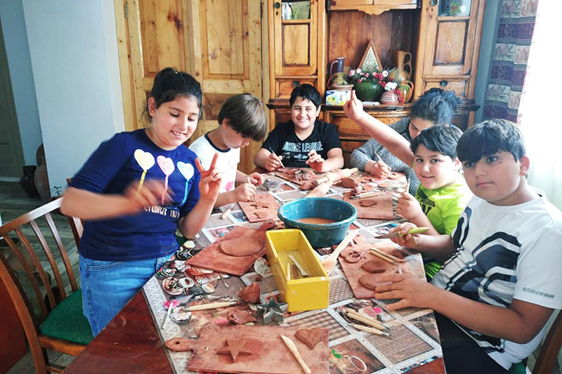Տան նկուղը վերածվել է արվեստանոցի, որտեղ ցուցադրված են նաև հայկական գյուղի կենցաղում օգտագործված հին իրեր ու գործիքներ: Դրանք անընդհատ համալրվում են. նպատակ կա հայկական գյուղի կենցաղն այս ճանապարհով նույնպես պրոպագանդելու: Հենց այս միջավայրում էլ իրականացվում են տարաբնույթ վարպետաց դասեր: