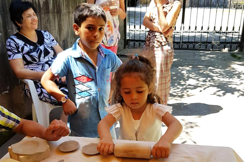 Աբովյան փողոցով զբոսնելիս նայեք աջ և կտեսնեք Գյումրի քաղաքի ամենահետաքրքիր պատկերասրահներից մեկը: Աբովյան 232 հասցեում Դուք կգտնեք «Մարիամ և Երանուհի Ասլամազյան քույրերի պատկերասրահը»: Պատկերասրահին կից նաև առաջարկվում է կերամիկական նկարչության և դեկուպաժի դասընթացներ, որտեղ կարող եք ստեղծել Ձեր սեփական հուշանվերը և վերցնել «արվեստի և արհեստի» քաղաքի մի մասնիկը Ձեզ հետ: Մեր տեղացի արհեստավորի ուղեկցությամբ Դուք կարող եք ծանոթանալ պատկերասրահում ցուցադրված Ասլամազյան քույրերի ոճին: Ձեր ստեղծած հուշանվերը կարող եք տանել Ձեզ հետ՝ Ձեր այցը միշտ հիշելու համար: Արհեստանոցից հետո կարող եք գիդի ուղեկցությամբ շրջայց կատարել պատկերասրահում և ծանոթանալ քույրերի արվեստին ու կյանքին: Շրջայցին կհաջորդի թեյի / սուրճի և քաղցրավենիքի հյուրասիրությունը պատկերասրահի այգում: Այցի ավարտին կարող եք մտնել պատկերասրահին կից խանութը, որտեղ կգտնեք Ասլամազյան քույրերի աշխատանքների ոճով պատրաստված իրեր, գրքեր, բացիկներ և այլն:
