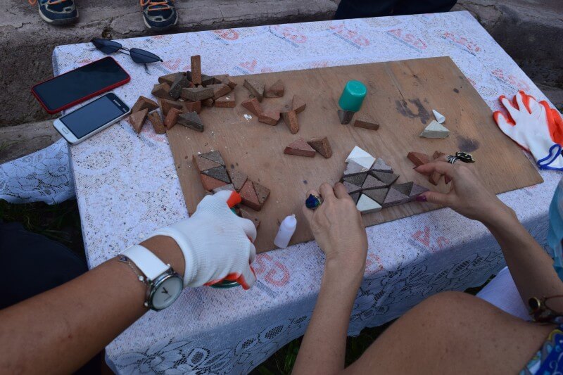 Վարպետաց դասը կսկսենք մեր հյուրատան բակի շրջայցով: Վարպետներ Վոլոդյան և Հովհաննեսը կներկայացնեն Ձեզ քարարվեստի նմուշները, տուֆի պատմությունը, գույները և կիրառությունը։ Այնուհետև Դուք կփորձեք պատրաստել Ձեր հուշանվերը՝ նախապես կիսապատրաստված քարերից: Վարպետների օգնությամբ Դուք կմշակեք դրանք, կտաշեք քարերը և կպատրաստեք Ձեր Արարատը՝ բաղկացած 2 գույնի տուֆից: