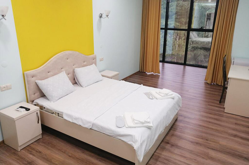 Հյուրատունն ունի 3 սենյակ՝ 2 երկտեղ և 1 եռատեղ: Բոլոր սենյակներում կա հագուստի դարակ, գրասեղան, փոքր սառնարան, արդուկ, պատուհանից բացվող գեղեցիկ տեսարան, լոգարան: