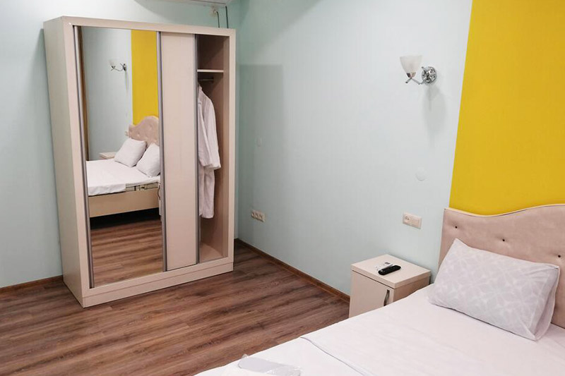 {{children}} Երեխա ԵրեխաներՄինչև 2 տարեկան երեխաների համար մահճակալ չի տրամադրվում. նրանք կարող են գիշերել ծնողների հետ երկտեղ մահճակալի վրա: Մինչև 6 տարեկան երեխաների կեցությունն անվճար է: Լրացուցիչ մահճակալի վրա 7 տարեկանից բարձր անձանց կեցության արժեքը 6000դրամ է: