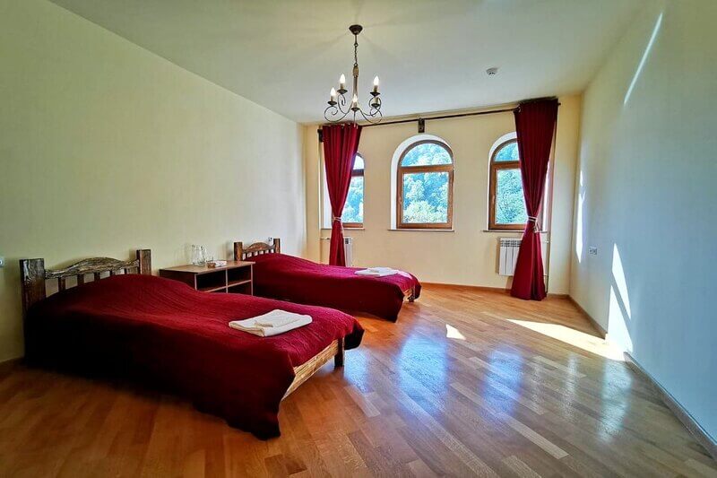 Հյուրատունն առաջարկում է սենյակներ, որոնք ունեն երկու ննջարան, որոնցից մեկում տեղադրված է երտեղ ընդհանուր մահճակալ, մյուսում՝ առանձին մահճակալներ: Լոգարանը երկու ննջասենյակների համար ընդհանուր է: