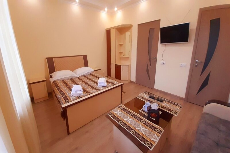 Առաջարկում ենք 3 սենյակ՝ 1 երկտեղանոց, 1 ընտանեկան և 1 լյուքս: Սենյակները կահավորված են անհրաժեշտ բոլոր հարմարություններով: Սնունդը մատուցվում է ըստ ճաշացանկի կամ շվեդական սեղանի տեսքով: