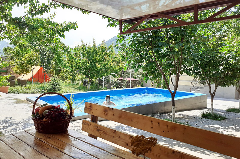 Հյուրատունն ունի 4 հարմարավետ ննջասենյակ` յուրաքանչյուրն իր սանհանգույցով, կարող է տրամադրվել նաև լրացուցիչ ծալվող մահճակալ, իսկ մինչև 5 տարեկան երեխան կունենա մահճակալ, որը կտրվի անվճար: Բակում ունենք հետաքրքիր ոճային լուծումներով հյուրասենյակ, բացօթյա տաղավար, խորովածանոց՝ իր բոլոր հարմարություններով, մեծ փայտե ճոճանակ, գեղեցիկ պտղատու այգի, որի պտուղներից կարող են հյուրասիրվել մեր հյուրերը: Խոհանոցն իր բոլոր հարմարություններով ցանկության դեպքում անվճար տրամադրվում է ինքնասպասարկվող հյուրերին: Հյուրատունն ունի մշտական տաք և սառը ջուր, ապահովված է Wi-Fi կապով: Կառուցապատված մաքուր լողավազանը ամառային ամիսներին փոքրիկ հյուրատունը դարձնում է հանգստի յուրօրինակ վայր, որտեղ կարող են գալ ընտանիքներով, փոքրիկ խմբերով` իրենց լիարժեք հանգիստը անցկացնելու համար: 2 հարմարավետ հեծանիվները, անվճար կտրամադրվեն առողջ ապրելակերպի սիրահարներին: Ցանկության դեպքում` նախաճաշը և ճաշը տրամադրվում է անհատական մոտեցմամբ: Գիշերային լուսավորությունը, փոքրիկ կառուցապատված ջրվեժը, դաշնամուրի դյութիչ ելևէջները և խարույկի բոցկլտացող կայծերը էլ ավելի ռոմանտիկ միջավայր են ստեղծում մեր սիրելի հյուրերի հանգիստը լիարժեք կազմակերպելու համար: Մեզ կարող են այցելել ինչպես պասիվ, այնպես էլ ակտիվ հանգստի սիրահարները և իրենց հանգիստն ու գիշերակացը կազմակերպել մեզ մոտ: