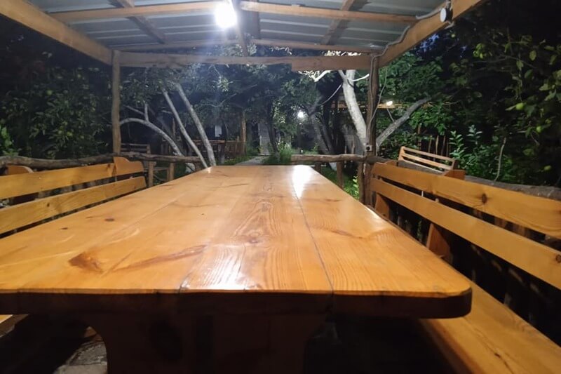 Հյուրանոցի ետնաբակում գեղեցիկ այգի է՝ լի տարատեսակ բուսատեսակներով, ծաղիկներով ու պտղատու ծառերով: Եվ հենց այս հրաշալի բնության գրկում տեղակայված փայտե տաղավարներում էլ կարող եք վայելել Ձեր երեկոները, և ինչու ոչ նաև առավոտյան մի գավաթ սուրճը: Իրենց համար հատկացված առանձին բնում այստեղ են ապրում նաև բազմաթիվ աղավնիներ, որոնք անմոռանալի ուրախություն են պարգևում հատկապես մեր փոքրիկ հյուրերին, որոնք կարող են նաև կերակրել թռչուններին: