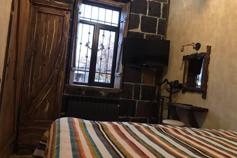 Հին Գյումրի ընտանեկան հյուրատանն առկա է մեկ հյուրասենյակ, մեկ ննջասենյակ, մեկ լոգասենյակ, խոհանոցային հատվածը: Հյուրատունը նախատեսված է մինչև 4 (+1) անձի համար և անկախ հյուրերի քանակից հյուրատունը տրվում է ամբողջությամբ: Ննջասենյակում առկա է մեկ մեծ երկտեղանոց տախտա, իսկ հյուրասենյակում՝ մեկ մեծ երկտեղանոց բացովի բազմոց-մահճակալ՝ իր անկողնային պարագաներով: Անհրաժեշտության դեպքում հնարավոր է անվճար ավելացնել մեկ մանկական մահճակալ: Նշենք նաև, որ ինչպես խոհանոցի, այնպես էլ հյուրասենյակի և ննջասենյակի ողջ կահույքը, ինչպես նաև շքեղ ջահերը հնաոճ ձևով պատրաստված են մաքուր բնական փայտից: