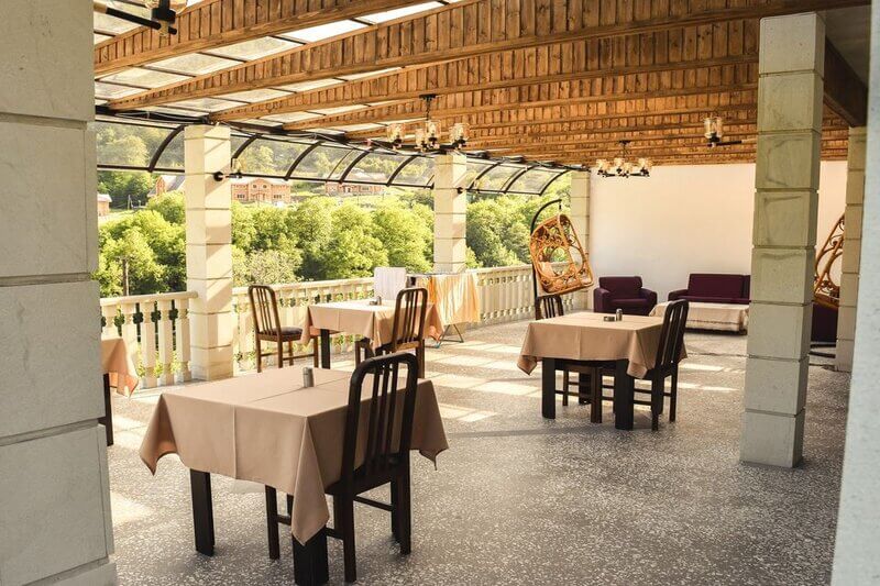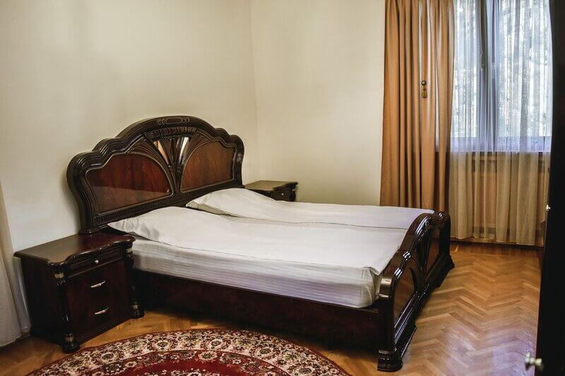 Առաջարկում ենք երկտեղ և ընտանեկան սենյակներ, որոնցից յուրաքանչյուրն ունի իր առանձին սանհանգույցը: VIP երտեղանոց սենյակն ունի նախասրահ, 1 ննջարան և պատշգամբ: Նախասրահում տեղադրված է բազմոց: Հյուրատանը գործում է լողավազան, շոգեբաղնիք, ինչպես նաև կա այգի, բուխարի, մեծ ընդհանուր պատշգամբ: