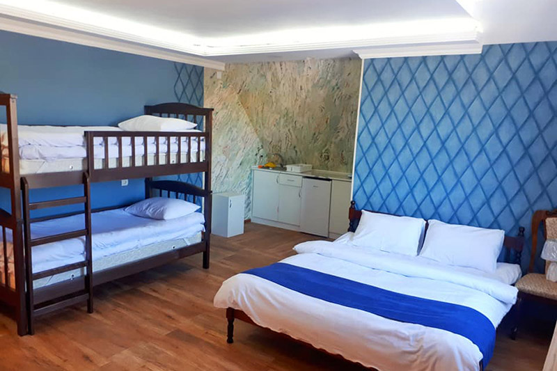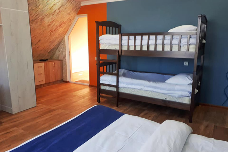 Համարներից մեկը 6 տեղանոց է՝ մեկ երկտեղանոց, 2 միտեղանոց մահճակալներով և մեկ բացվող բազմոցով(2 անձի համար)։ Մյուս սենյակում կա 2 մեկտեղանոց մահճակալ և մեկ բացվող բազմոց: Սենյակները ձայնամեկուսացված են: