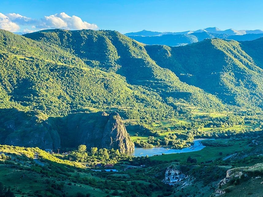 Ձեր ձիարշավը կսկսվի փոքրաչափ Այգեհատ գյուղի հարևանությամբ գտնվող ձիարշավարանից: Դուք կձիավարեք Դեբեդի կիրճի եզրով, մինչև հասնեք միջնադարյան ժայռափոր Ծաթերի վանք՝ կախված ձորի եզրից: Շրջանցելով սոճենու անտառը՝ դուք կհասնեք Ձորագետի կիրճի լավագույն տեսարանը խոստացող դիտարկման վայրի։ Դրանից հետո, իջնելով Ձորագետի հովիտ՝ կպատրաստվեք հացկերույթի ցից քար կոչվող վայրում։ Գետափին հանգստանալուց հետո կշարունակեք գետի երկայնքով և անցելով կամուրջը՝ կրաժվեք դեպի տպավորիչ ու հիշարժան վայր՝ Հնեվանքի միջնադարյան համալիր։ 7րդ դարում հիմնադրված այս վանքը թաքնված է գետի աջ ափին ՝անտառածածկ բլրի վրա: Վանքի վերակառուցումը հովանավորվել են փառահեղ Մամիկոնյանների իշխանական տոհմից սերված Օրբելյանների ներկայացուցիչնեը։ Ձեր հաջորդ կանգառը Ձորագետի երկու ափիերին ընկած «եղբոր և քրոջ» կոչված բլուրների բերդերն են, որտեղ դուք կհասնեք խնձորի այգիներով և կրկին կտեղեկանաք հին շրջանի հիշարժան դեպքերի ու պատմությունների մասին: Դրանից հետո դուք կձիավարեք գետի երկայնքով և կբարձրանաք դեպի կիրճի հյուսիսային եզր: Եվ վերջապես, ձեր արահետը ցորենի ու եգիպտացորենի դաշտերով ձեզ կուղղորդի հետ՝ դեպի ձիարշավարան: