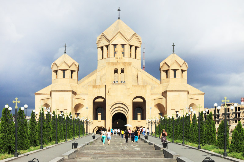 Սուրբ Գրիգոր Լուսավորիչ տաճարը կառուցվել է 2001 թվականին: Այդ ժամանակ լրանում էր Հայաստանում քրիստոնեությունը որպես պետական կրոն ընդունելու 1700-ամյակը: Եկեղեցին կրում է Գրիգոր Լուսավորչի անունը, ով մեծ ավանդ ունի քրիստոնեության ընդունման գործում: Այս եկեղեցին Երևանի նորակառույց եկեղեցիներից մեկն է: Վերնիսաժում վաճառվում են հայ արվեստագետների ձեռքի աշխատանքները, արվեստի նմուշներ, կիրառական արվեստի նմուշներ, հուշանվերներ, գորգեր, ոսկերչական իրեր, զարդեր, նկարներ, ազգային երաժշտական գործիքներ, տիկնիկներ, քարե, կավե, փայտե, մետաղե, խեցեղենի նմուշներ, հնաոճ իրեր, ինչպես նաև բազմաթիվ հետաքրքիր իրեր՝ գրքեր, կենցաղային պարագաներ։ Երևան քաղաքի գլխավոր հրապարակում են գտնվում կառավարական շենքերը, Հայաստանի պատմության թանգարանը և ազգային պատկերասրահը, իսկ կենտրոնում՝ խճանկարային գորգը: