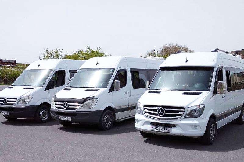 Առաջարկում ենք մատչելի և հարմար ուղևորափոխադրումներ 9-20 անձի համար՝ մերսեդես սպրինտեր մեքենաներով, Հայաստանի բոլոր ուղղություններով: Աղյուսակում ներկայացված են տեղափոխման երթուղիները: Գինը ներառում է տեղափոխում Երևանից դեպի նշված վայրերը, սպասելաժամանակը և հետադարձ ճանապարհը՝ սահմանված ժամերի ընթացքում: Կատարվում է նաև միակողմանի տեղափոխում դեպի Երևան նշված վայրերից նույն արժեքով: