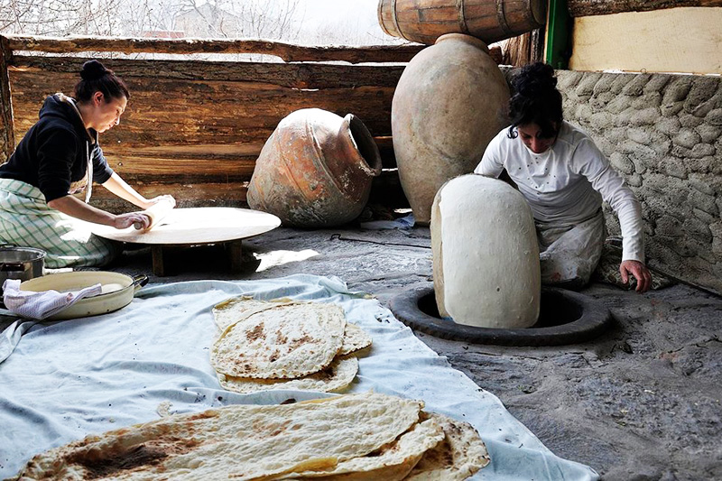 Գառնու տաճարից ոչ հեռու (ոտքով մոտ 10 րոպե հեռավորության վրա) բոլորս միասին կուղևորվենք մի գողտրիկ ռեստորան՝ տաճարի զարմանահրաշ տեսարանով, որտեղ ոչ միայն կհանգստանաք, այլև ներկա կգտնվեք լավաշ թխելու խոհարարարական վարպետության դասին, և իհարկե, կհամտեսեք թարմ թխված ավանդական հայկական լավաշը: Ապա կմատուցվի հայկական ավանդական ճաշ՝ հատկանշական հյուրընկալությամբ։
